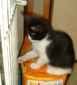 やつ、すごいです。食欲もすごいですが、顔を綺麗にし、爪きりしようものなら、さわるんじゃにゃい!!の勢いで暴れるは噛むは引っ掻くは唸って怒って、久しぶりに仔猫なのに野良気質でにゃん吉なんて問題じゃないです。でも、そういう子が嫌いなわけではないので、むしろかまいたくなり爪切りは無事終了。私とバトルしたせいか、へそ天で寝るわ、起きたらたっぷり食べるわの大物でした(o ̄ー ̄o) ムフフ
