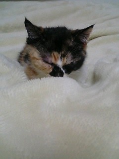今日は午前中に仕事して、午後すぐ仕入れに行き、娘が帰ってから三毛ちゃんをお届けするちとハードな一日だった。・・・・でも、忙しいのはよくある事だし、三毛ちゃんをお届けしたら、家に帰って仕事をしなきゃ・・・そんなカンジで何度もメールで話し合いを進め、動物病院にお勤めのお嬢さんに三毛ちゃんをお渡しする運びになり、理想的な里親様だな~って思いながら、お届けに行った。