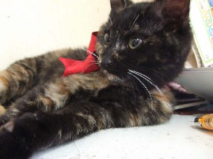 写真はサビ猫の未来ちゃん、新名「夢姫ちゃん」