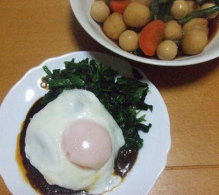 今日は春巻き、ほうれん草のガーリックソテー、卵焼き