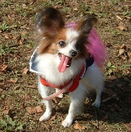 もう13歳のおばあちゃんでもともと小さく3kgありません。チワワより小さいパピヨン犬。口元に障害があり、下をしまうことできず、3匹いた仔犬の中でビビビと来て選びました。